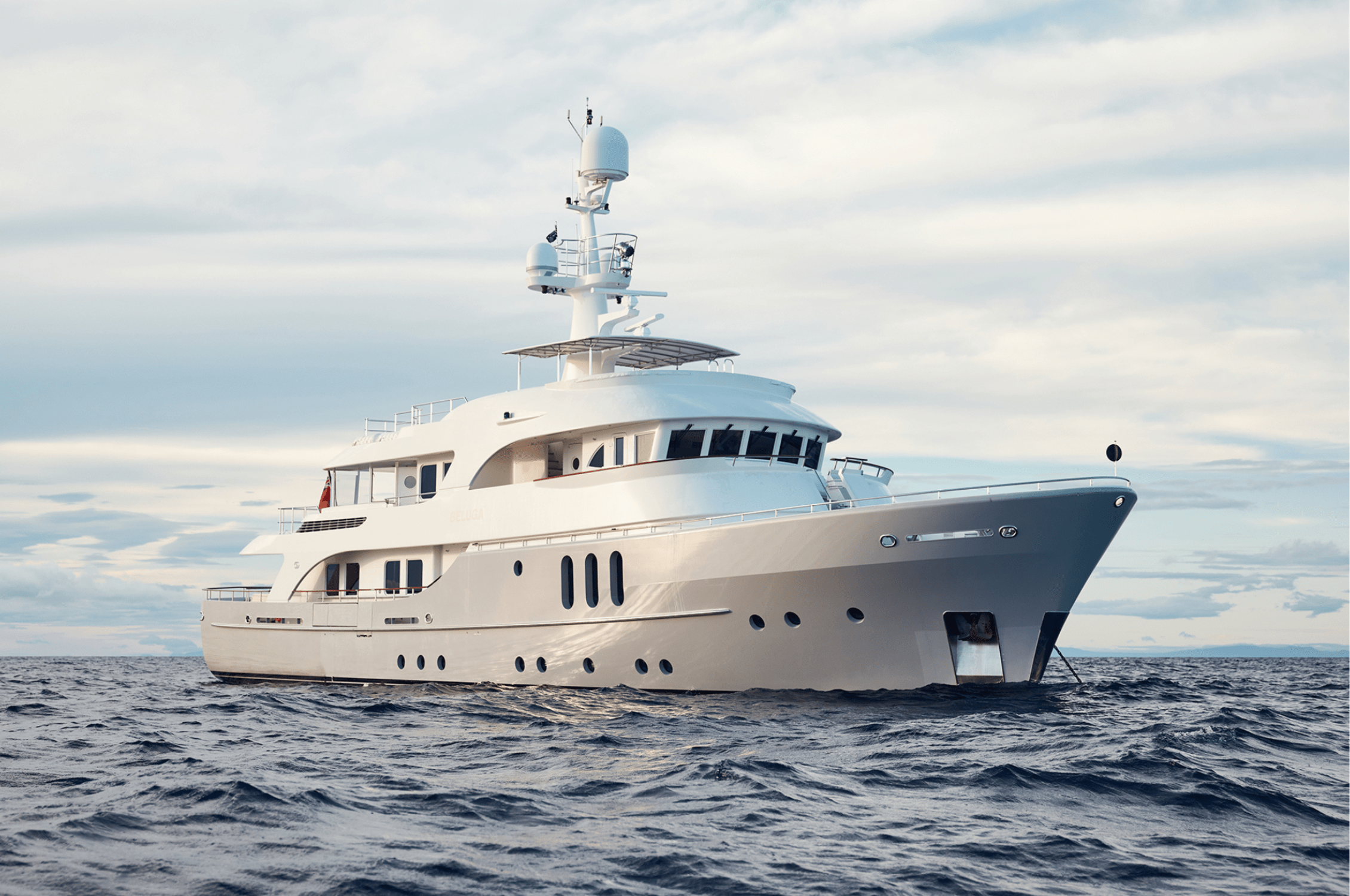SÁSTA meaning ‘satisfied’ in old Irish answers every need a guest might have. Providing spacious and convivial living areas, enabling free circulation between interior and exterior while also integrating luxurious cabins optimizing comfort and fun at every design aspect. Her champagne-coloured hull during sundawn, makes SÁSTA an unrivalled jewel nicely blending in with the natural environment.