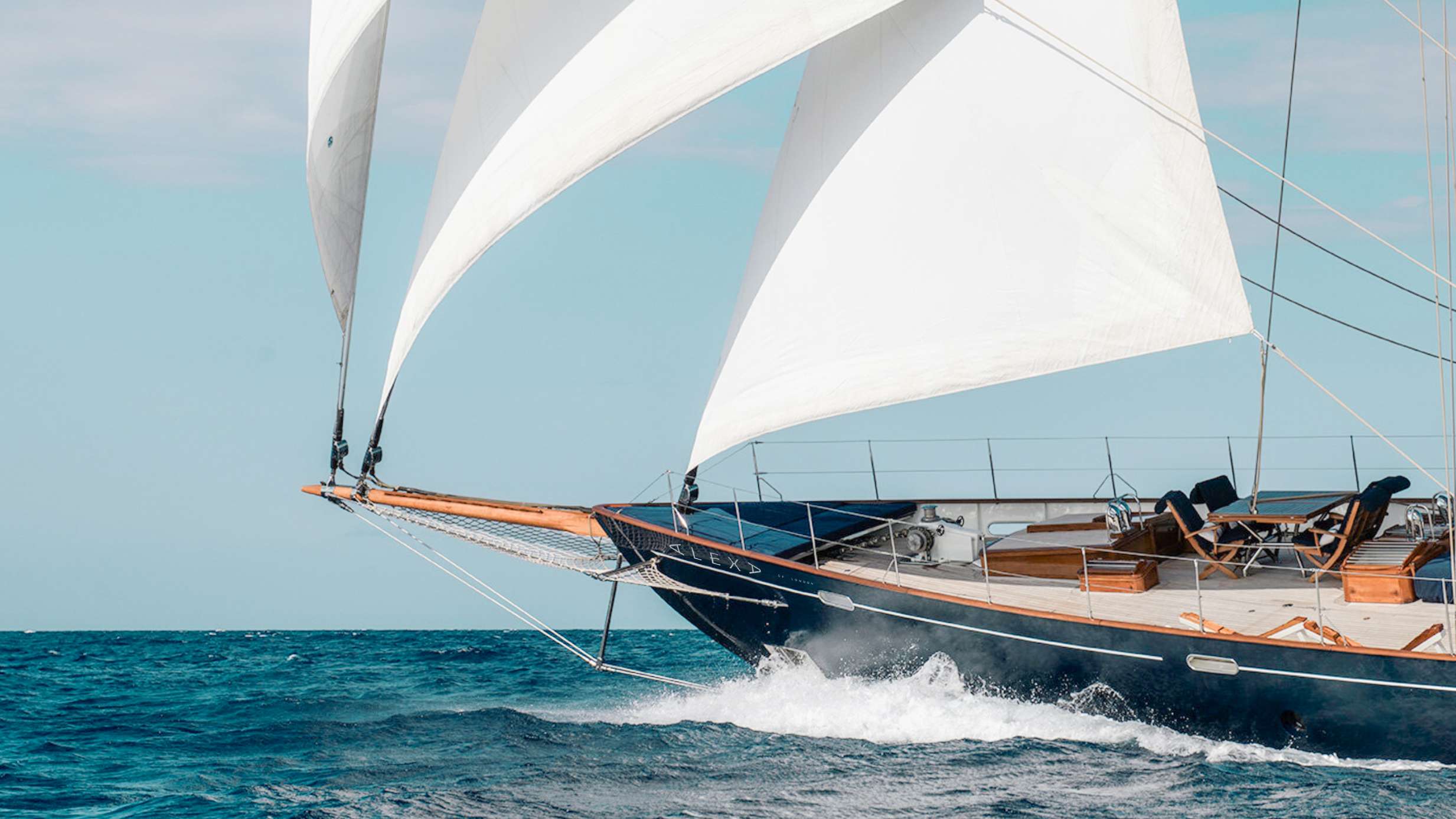 ALEXA OF LONDON is a 37.5 m classic sailing yacht that embodies timeless elegance and pure maritime spirit. Built in 1992 and beautifully refitted in 2017, she carries a graceful gaff-rigged cutter design that delivers both historic charm and effortless performance on the open sea.