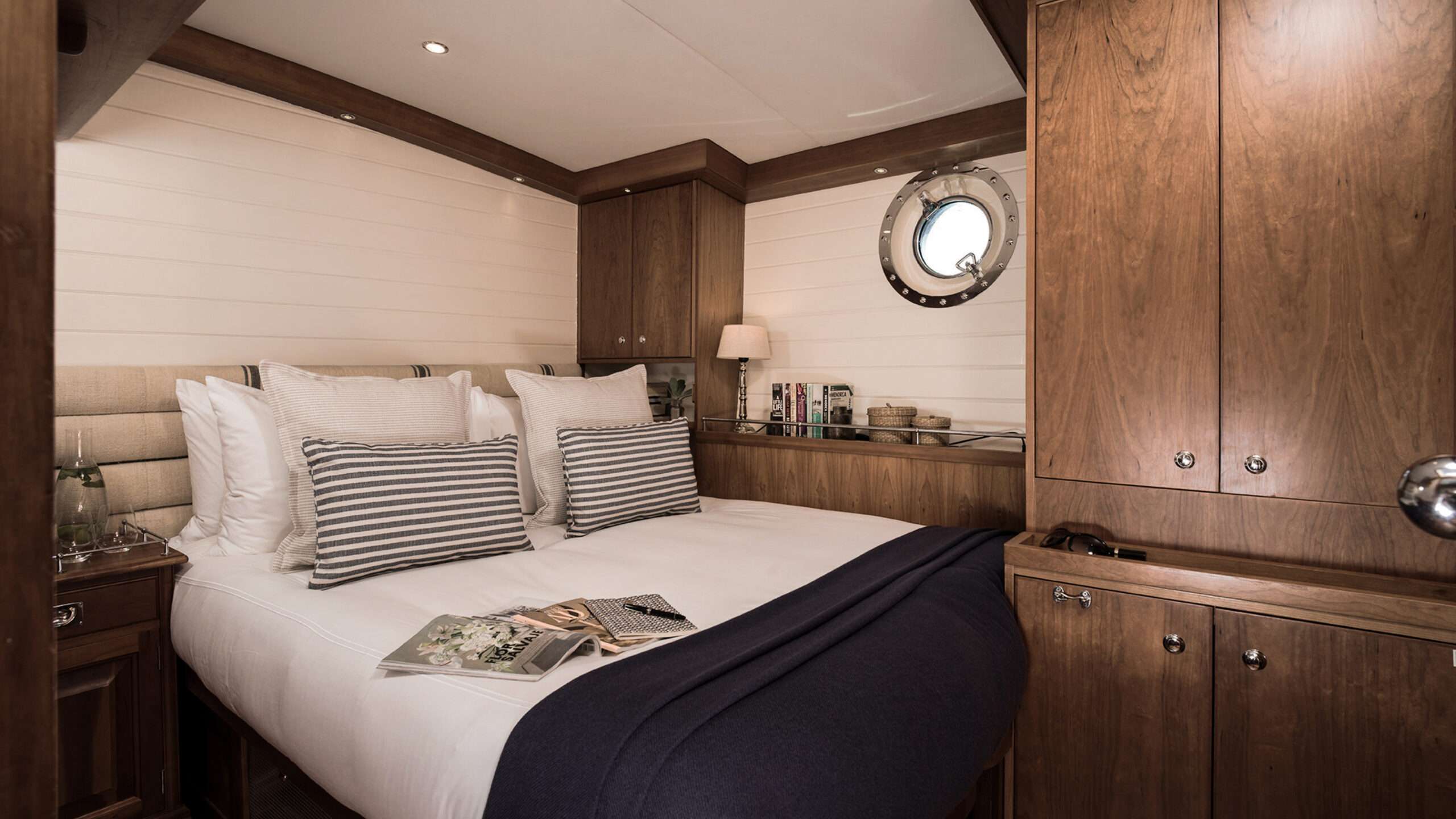 With accommodation for up to 8 guests in 4 cabins, Alexa of London invites you to unwind in spacious, inviting interiors and generous deck spaces perfect for relaxation, alfresco dining, and savoring every moment of your voyage.