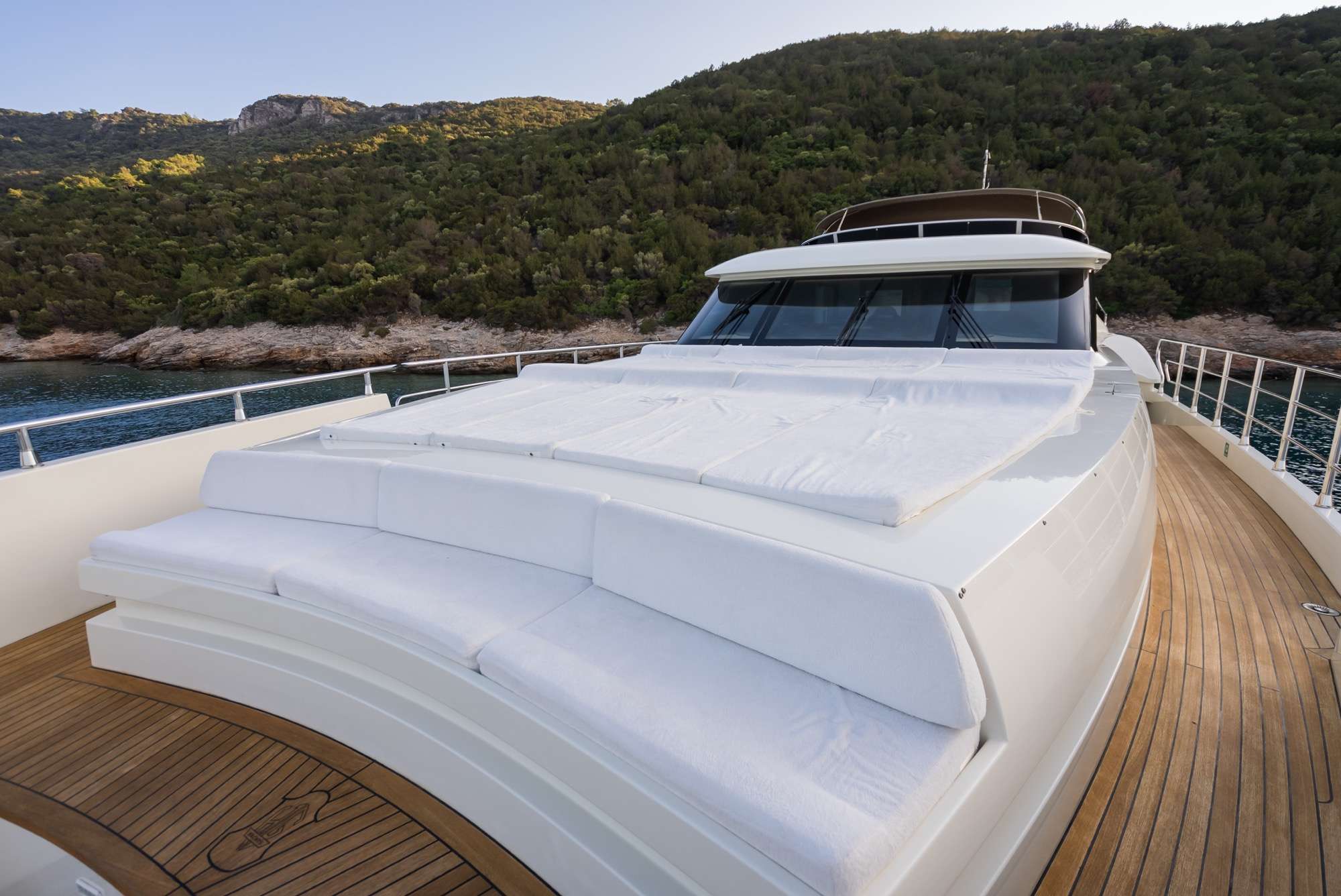 Her exterior spaces are designed for ultimate relaxation and socializing. The expansive sundeck features a private Jacuzzi, an alfresco bar, and versatile lounging areas, while the foredeck offers a massive sunbathing zone with panoramic views. For active guests, ARCHSEA comes equipped with a wide array of water toys, including a jet ski, paddleboards, and water skis, easily accessible from her large swim platform.