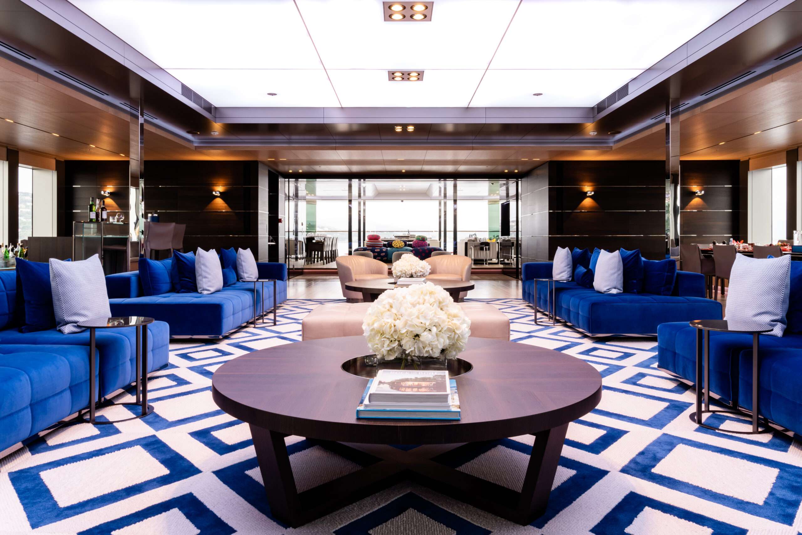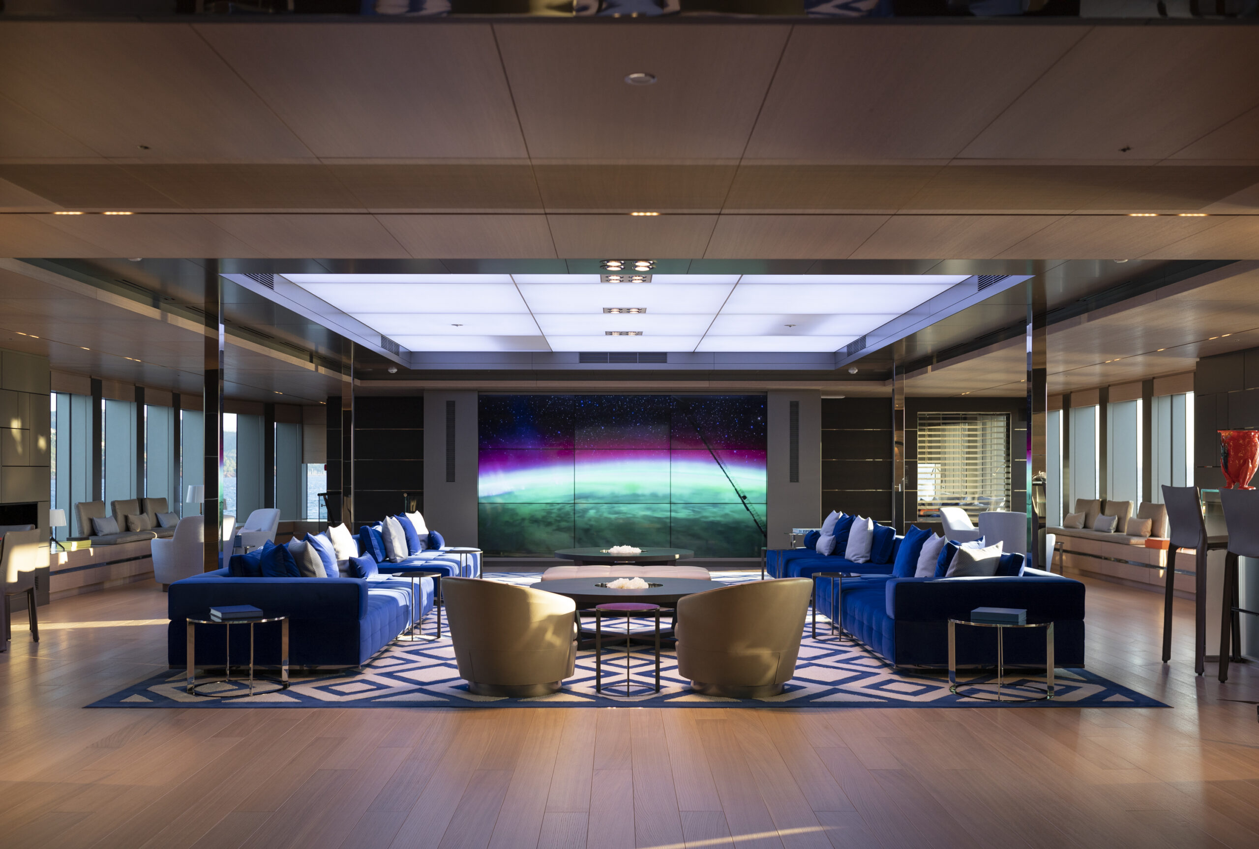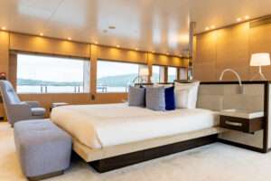 BOLD accommodates 12 guests across the Owner’s suite, three VIP cabins, and four additional guest cabins. The Owner’s suite features a master bedroom, his-and-hers ensuite, and a private salon with direct access to the exterior decks. Extensive use of glass throughout the yacht enhances the open, airy feel and connects interior spaces with the surrounding seascape.