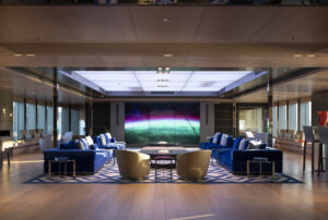 Inside, SilverYachts’ design team has created a luxurious yet functional interior. Contemporary finishes of teak, oak, and marble are complemented by metallic accents, while open-plan layouts and floor-to-ceiling windows flood the yacht with natural light. The upper deck loft seamlessly flows into a winter garden with wraparound sliding glass panels and air conditioning, perfect for entertaining guests indoors or outdoors.