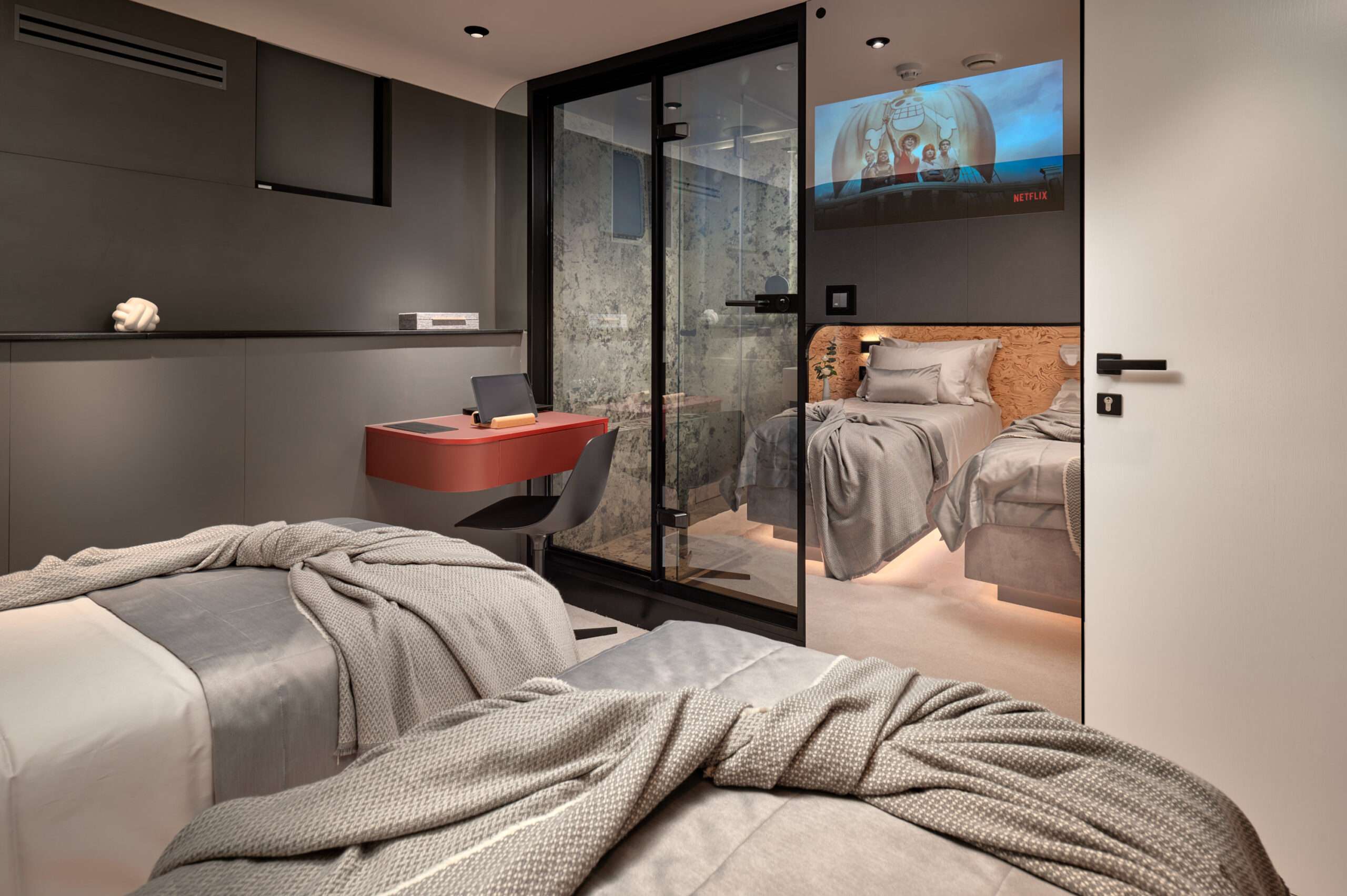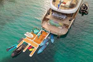 Her standout feature—a seawater pool seamlessly connected to a spacious swim platform—creates a breezy, panoramic atmosphere reminiscent of an alfresco seaside club. The expansive sundeck invites relaxation with a jacuzzi, bar, open-air cinema, and plush lounging areas.