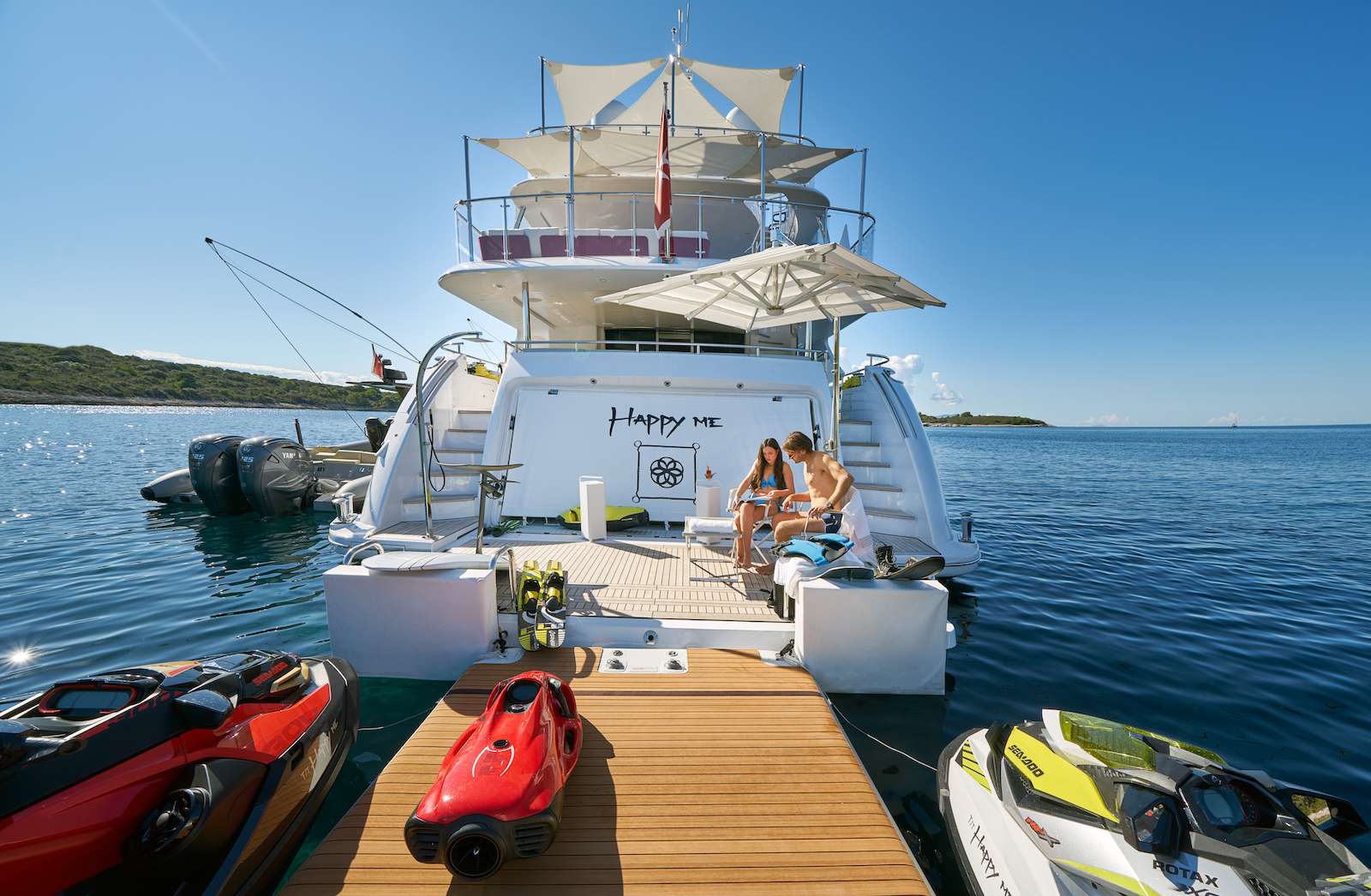 HAPPY ME is a standout 40m Benetti designed for fun, comfort, and style. With a huge sundeck, Jacuzzi, gym equipment, karaoke, disco lighting, and even a massage room, she brings serious entertainment on board. Her layout offers flexible guest accommodation, top-tier toys, and a fast 12m chase boat—making her a top choice for luxury charters.
