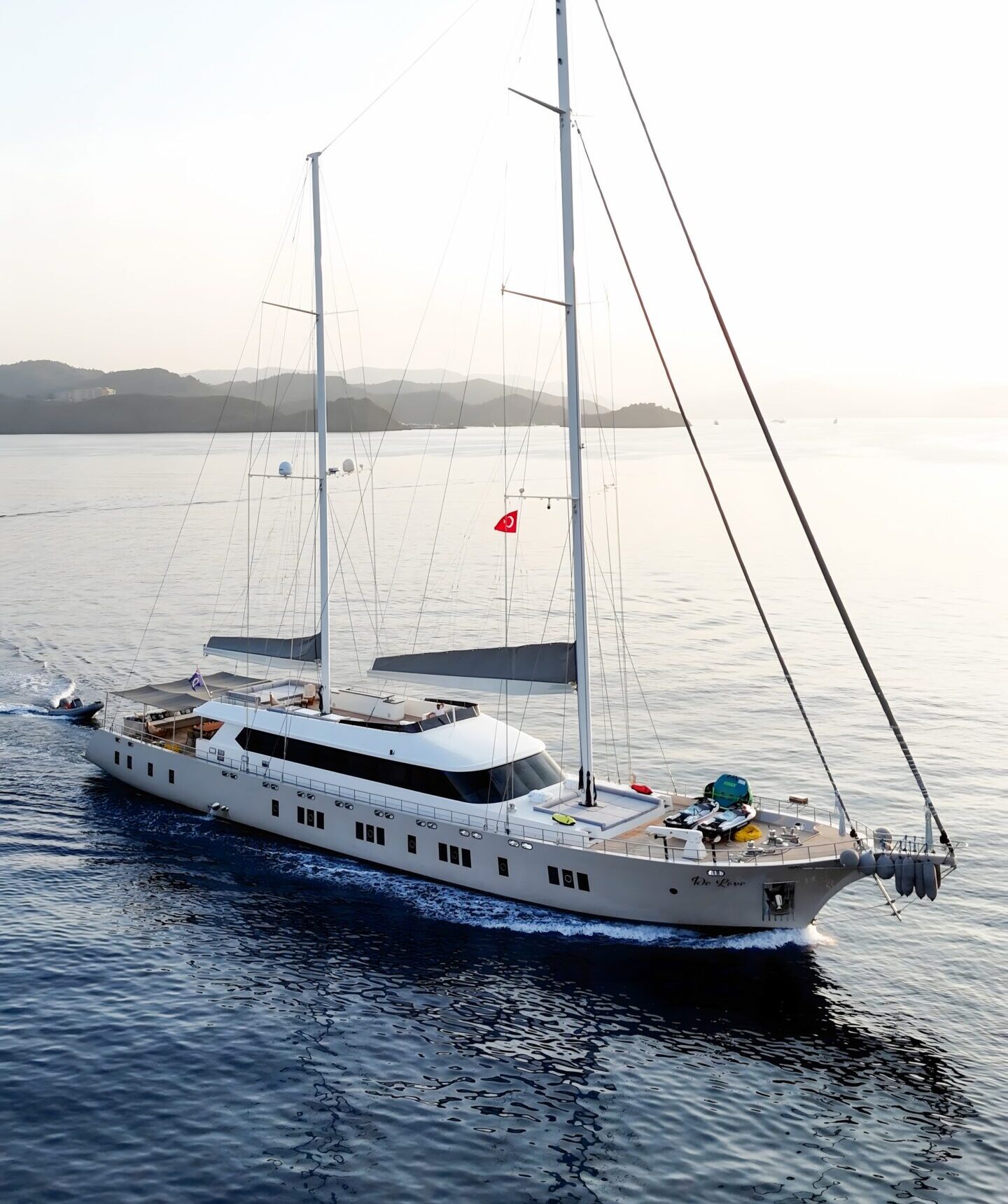 Outside, HIGHLANDER’s expansive decks provide ample space for sunbathing, socializing, and savoring breathtaking vistas. The upper deck is adorned with a Jacuzzi, wet bar, and a shaded dining area, while the main deck boasts an alfresco dining area and comfortable seating alcoves. For those seeking adventure, the yacht offers an array of water toys, including jet skis, kayaks, paddleboards, and more.