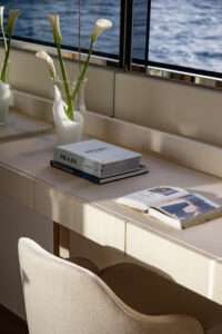 Up to 10 guests are accommodated in 5 double cabins, while her spacious decks allow 12 guests to enjoy day cruising. A skilled crew of seven takes care of every detail, providing attentive service and ensuring guests can fully unwind throughout the journey.