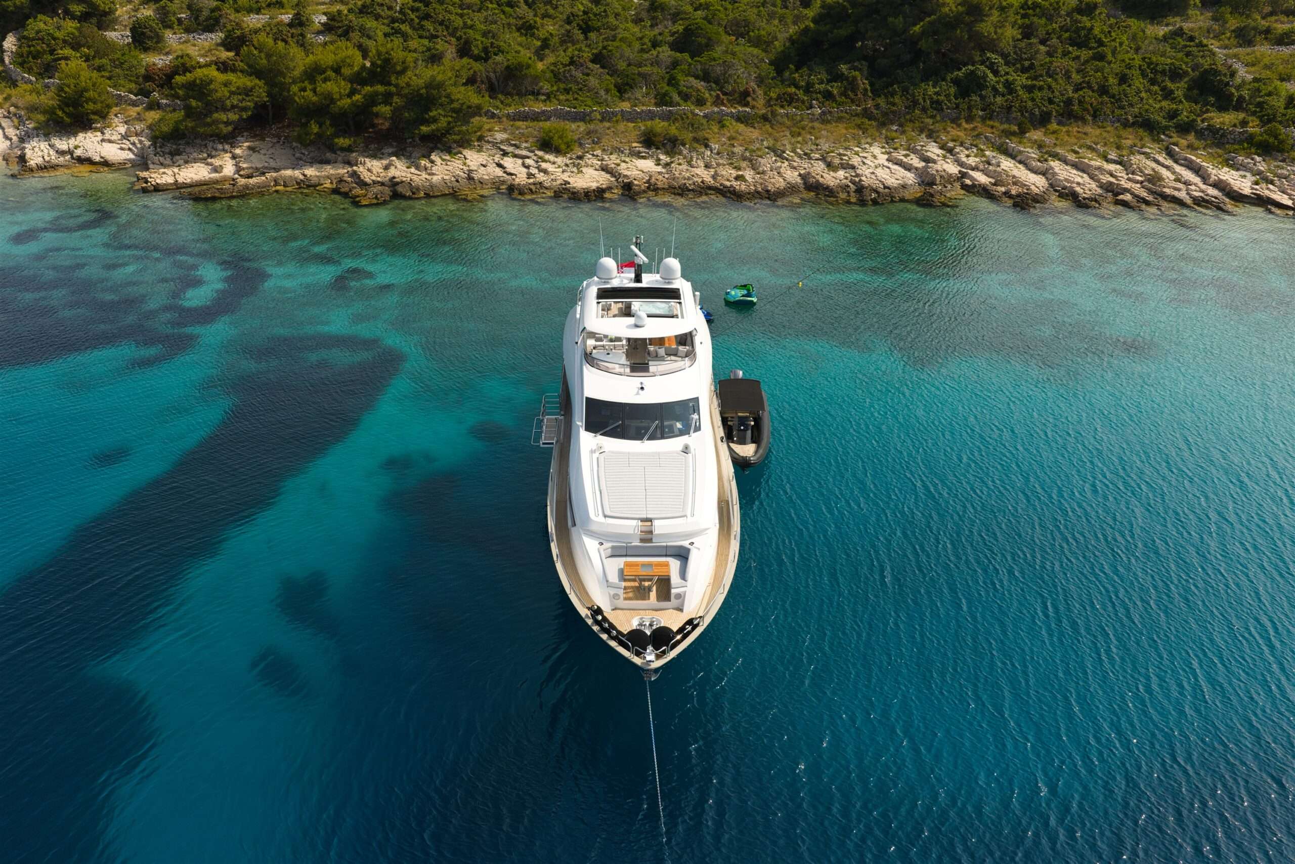 Days on QUANTUM flow effortlessly, from the hydraulic balcony that opens the saloon to the Adriatic Sea, to the sundeck where a Jacuzzi and loungers invite relaxation under the Mediterranean sun. Her 9m luxury tender opens the door to exploration, taking you to secluded beaches, pristine bays, and hidden coves along the Dalmatian Coast, including Hvar, Brač, Vis, and Korčula.