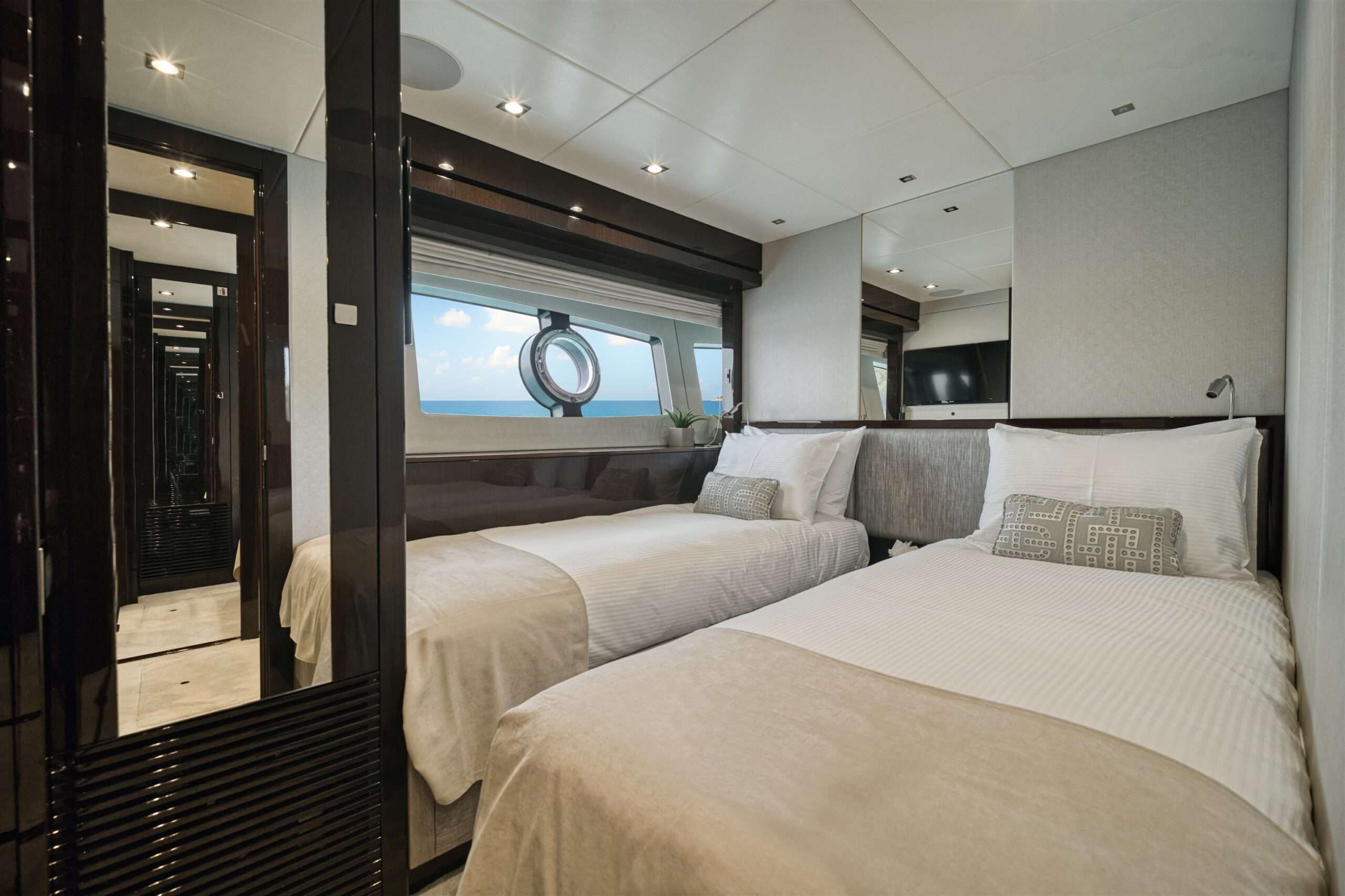 Step aboard QUANTUM luxury yacht, a 28m Sunseeker 95 designed for families and friends who crave both indulgence and discovery. With five elegantly appointed cabins, including a unique split-level master suite, QUANTUM comfortably hosts up to ten guests in style.