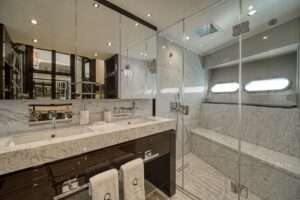 QUANTUM’s interiors balance sophistication and comfort, providing a welcoming environment for family gatherings or entertaining friends. The open-air decks offer panoramic views of the coastline, perfect for sun-filled afternoons or starlit evenings. Every moment aboard is elevated by a dedicated crew of four, ensuring seamless service and attention to detail.