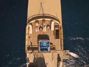 Large exterior decks are one of SEAGULL II’s standout features. Guests can enjoy multiple areas for dining, relaxing, and sunbathing, including wide teak decks and well-shaded lounges. These generous outdoor spaces make her an excellent choice for groups looking for both privacy and social areas during a charter.