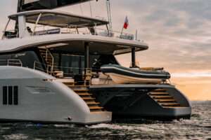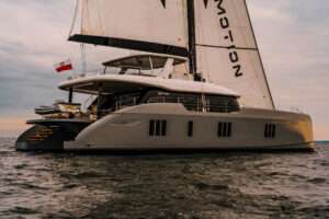 XMOTION is a sleek Sunreef 80 sailing catamaran that blends style with performance. Custom-designed throughout, she offers a modern onboard environment with high-end finishes.