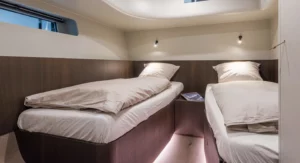 YUME, a sleek YYachts Y7 built in 2024, delivers exceptional sailing performance throughout the Mediterranean. She comfortably hosts 6 guests across 3 well-appointed cabins—1 master suite and 2 twin cabins (one converts to double)—with a professional crew of 2 ensuring seamless service.
